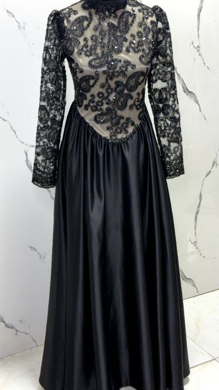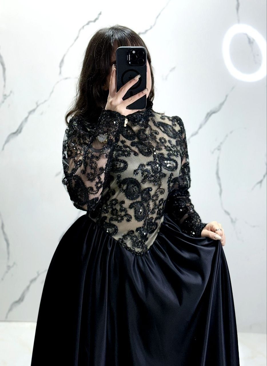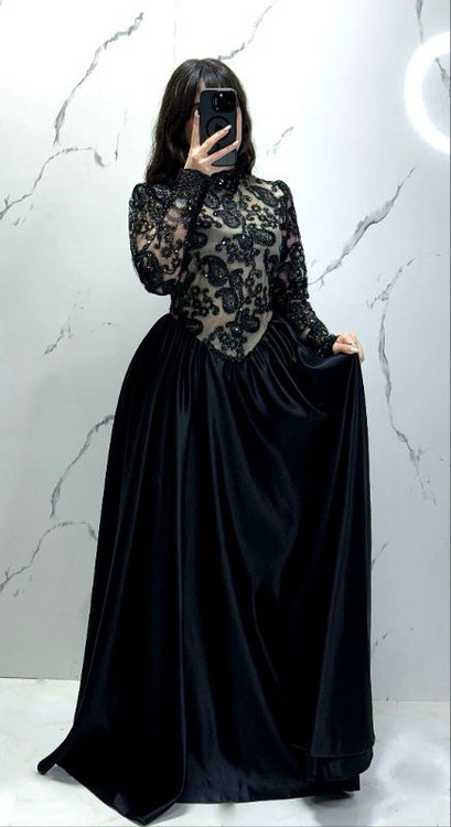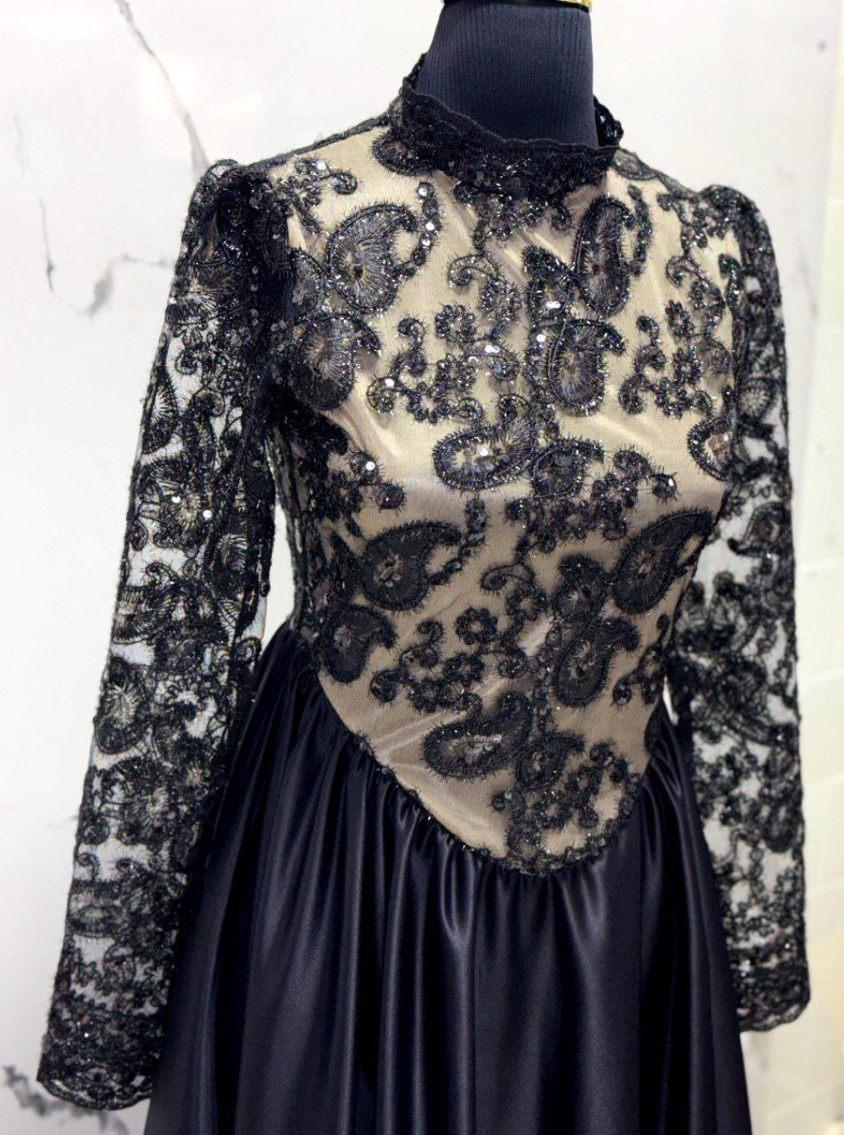 🖋نام : لباس مجلسی زنانه دخترانه مزونی ترمه مشکی دامن ساتنی کد 6447